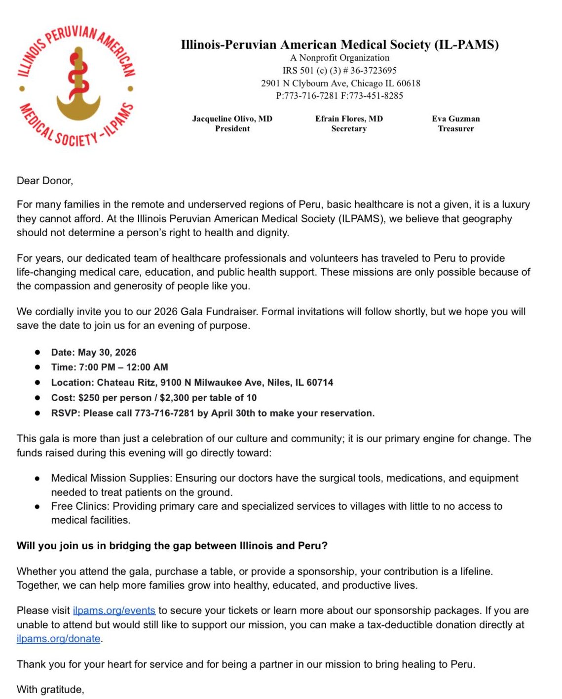 The 2026 Gala Fundraiser is the primary source of funding for IL-PAMS’s medical missions to underserved regions in Peru. The organization provides life-changing healthcare, surgical supplies, and free clinics to families with little to no access to medical facilities.